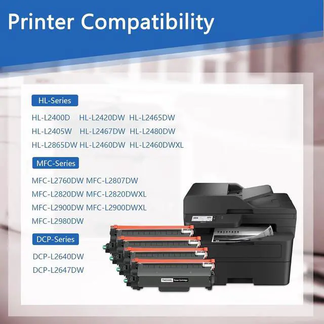 Printer Compatibility: HL-L2400D HL-L2405W HL-L2420DW HL-L2460DW HL-L2460DWXL HL-L2465DW HL-L2467DW HL-L2480DW HL-L2865DW DCP-L2640DW DCP-L2647DW MFC-L2760DW MFC-L2807DW MFC-L2820DW MFC-L2820DWXL MFC-L2900DW MFC-L2900DWXL MFC-L2980DW Printers