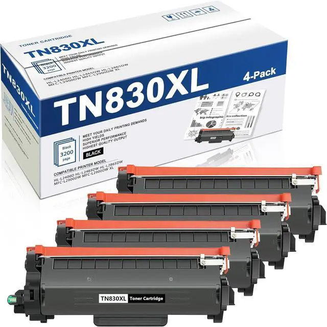 What's in the box: 4-Pack TN830XL High Yield Toner Cartridge Black (With Chip)