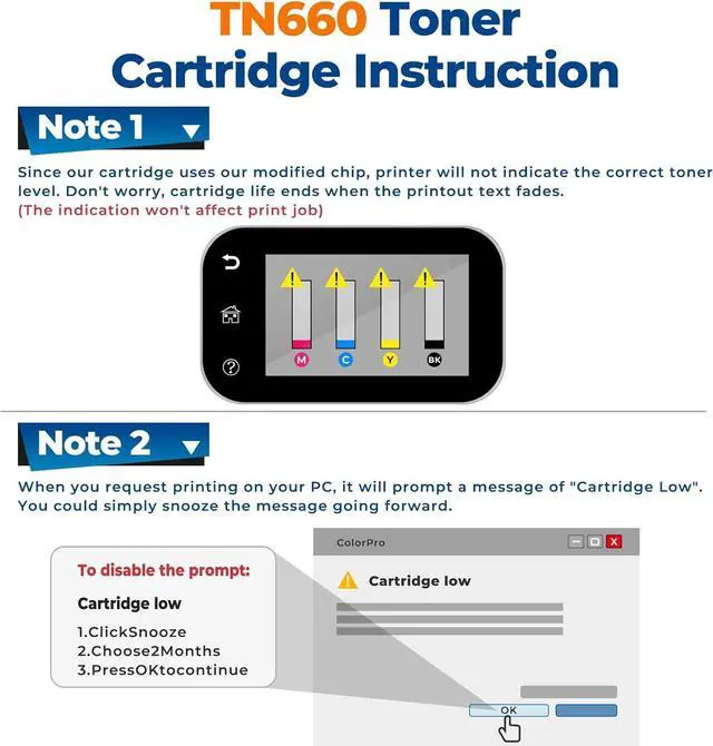 With Chip: Compatible for Tn-660 toner HL-L2380DW toner cartridges HL-L2320D toner cartridges contains the chips, no need to remove and install them. (Not original)