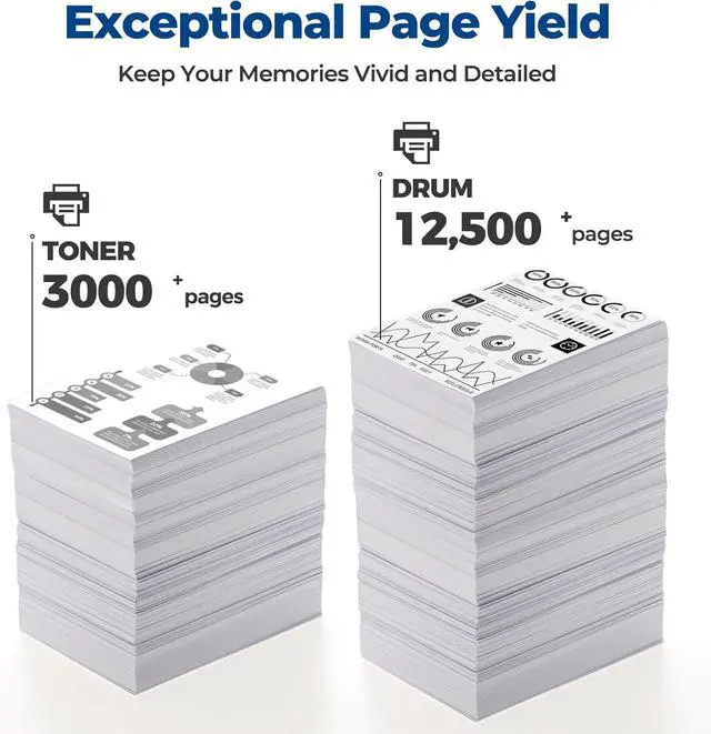 Page Yield:Up to 3,000 pages per TN 760 toner cartridge and 12,500 pages per DR 630 drum unit(at 5% coverage of letter A4).