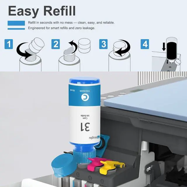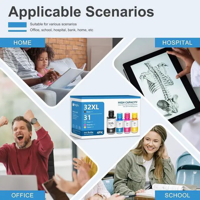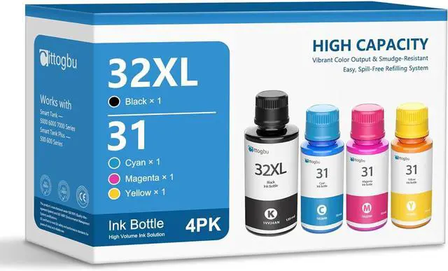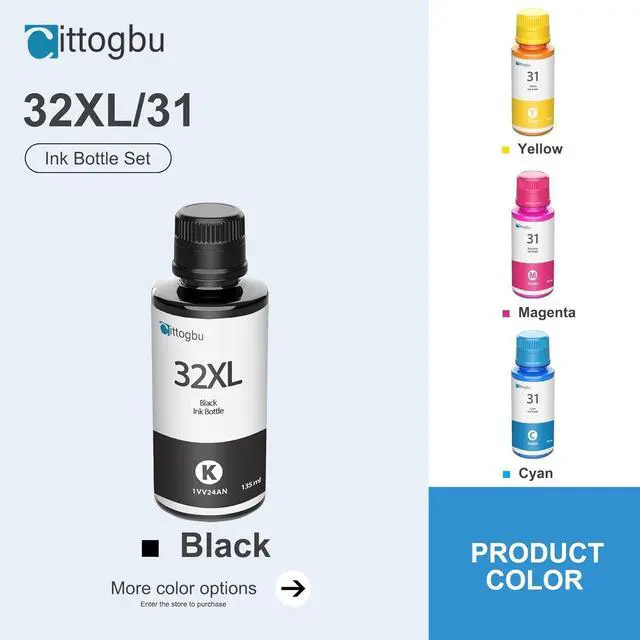 31 32XL Ink Bottle Set - 1 Pack 32XL Black Ink Bottle, 1 Pack 31 Cyan Ink Bottle, 1 Pack 31 Magenta Ink Bottle,1 Pack 31 Yellow Ink Bottle
