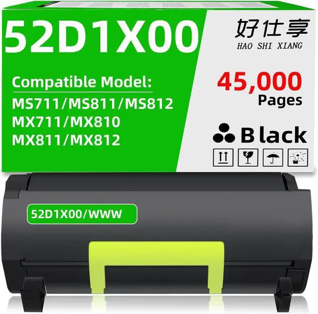 52D1X00 52D1X0E 521X 62D1X00 62D1X0E 621X Black Toner Cartridge Compatible with Lexmark ONLY for MS711 MS811 MS812 MS811dn MS812de MX711 MX810 MX811 MX812 MX810de Printer (45000Pages-1Pack)