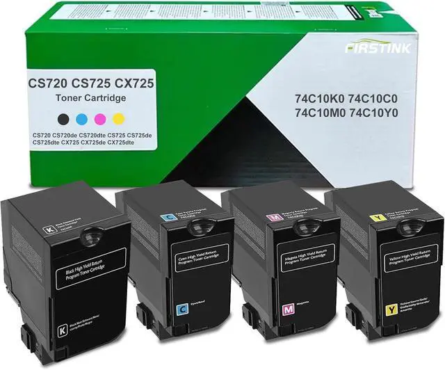 • Package include] :4 Pack CS720 CS725 cx725 Toner Cartridges (cs720 black toner cartridge,cs720 cyantoner cartridge,CS720 magenta toner cartridge,cS720 yellow toner cartridge)