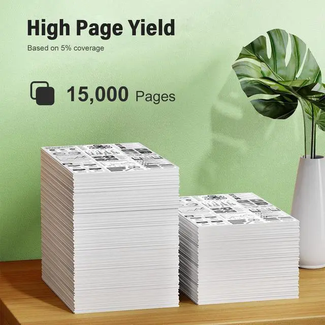 High Page Yield: 15,000 pages at 5% coverage of Letter Size
