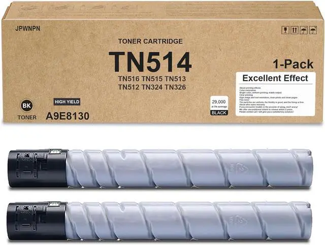 Package Contains: 2 x Black TN514 Toner Cartridge(A9E8130) compatible with TN512 TN513 TN514 TN515 TN516 TN324 TN326 toner cartridge