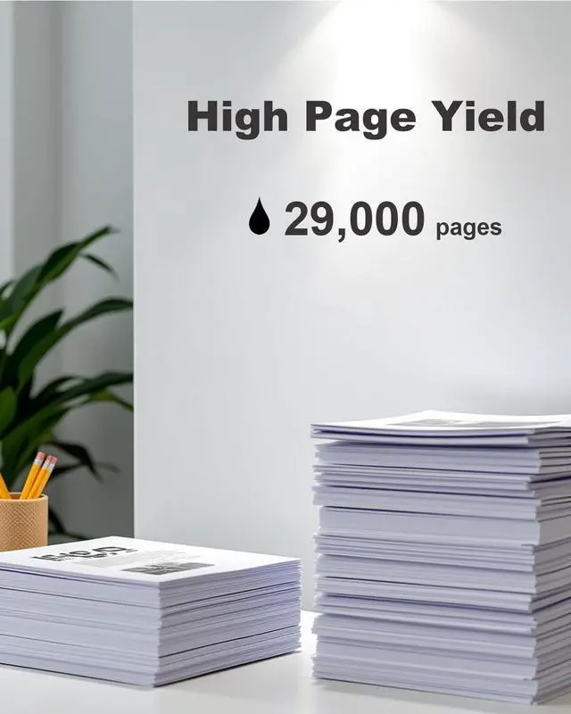 Page Yield:Per Black Toner Cartridge is about 29,000 pages at 5% coverage of paper A4