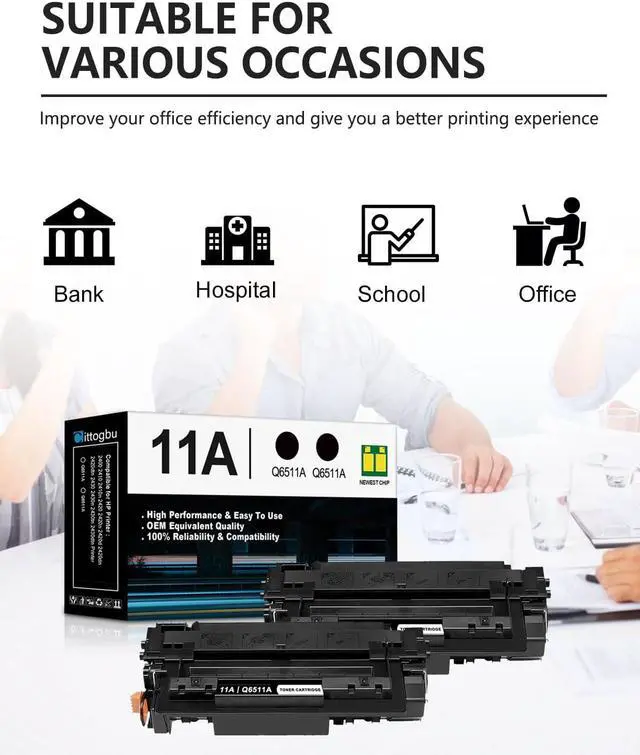 Product in the box: 2 Packs 11A toner cartridge, 11A Q6511A toner (Black)
