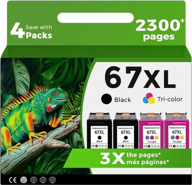 Package contents: 4-pack of ink 67 xl (2 67xl black, 2 67xl color), and a user guide