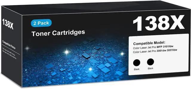 138X 138A black toner cartridges compatible: with HP Laser Jet Pro MFP 3101fdw, MFP 3101sdw, Laser Jet Pro 3001dw, 3001fdw Printer; 138X toner for laser jet pro mfp 3101fdw toner, laser jet pro mfp 3101sdw toner, laser Jet Pro 3001dw toner, Laser Jet Pro 3001fdw toner; 138X black toner for mfp 3101fdw toner cartridges, 3001dw toner cartridges, mfp 3101sdw toner cartridges, 3001fdw toner cartridges