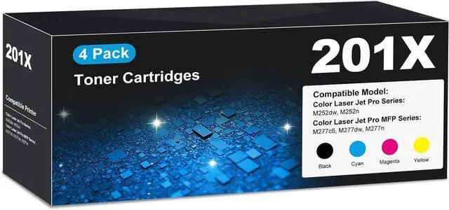 Product Name: 201X toner cartridge 4 pack for mfp M277dw toner, mfp M277c6 toner, pro m252dw toner, mfp M277n toner, pro m252n toner; 201X toner cartridges high yield for mfp M277dw toner cartridges, mfp M277c6 toner cartridges, pro m252dw toner cartridges, mfp M277n toner cartridges, pro m252n toner cartridges