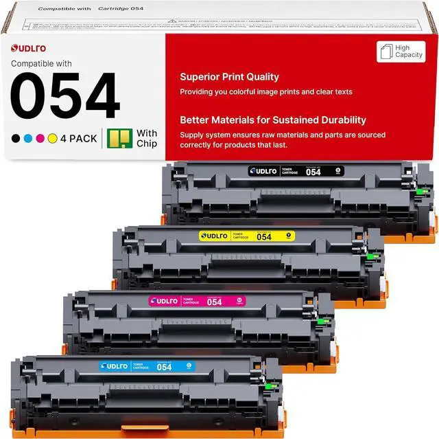 Package Contents: 4 Pack 054 Toner Cartridge Set replacement for Canon 054 Toner Cartridge (1 x cartridge 054 Black toner, 1 x cartridge 054 Cyan toner, 1 x cartridge 054 Magenta toner, 1 x cartridge 054 Yellow toner)