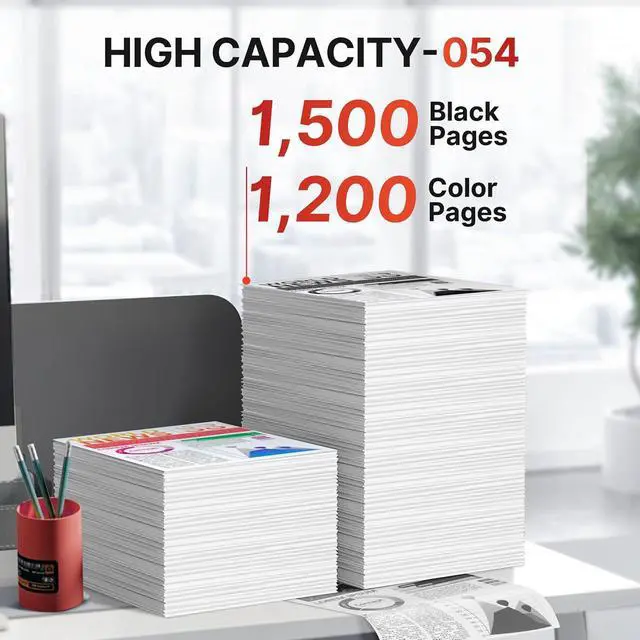 Page Yield: 1,500 Pages Per Black 054 toner Cartridge and 1,200 Pages Per Color Cartridge (based on 5% coverage of A4/Letter paper), compatible for canon 054H toner cartridges set
