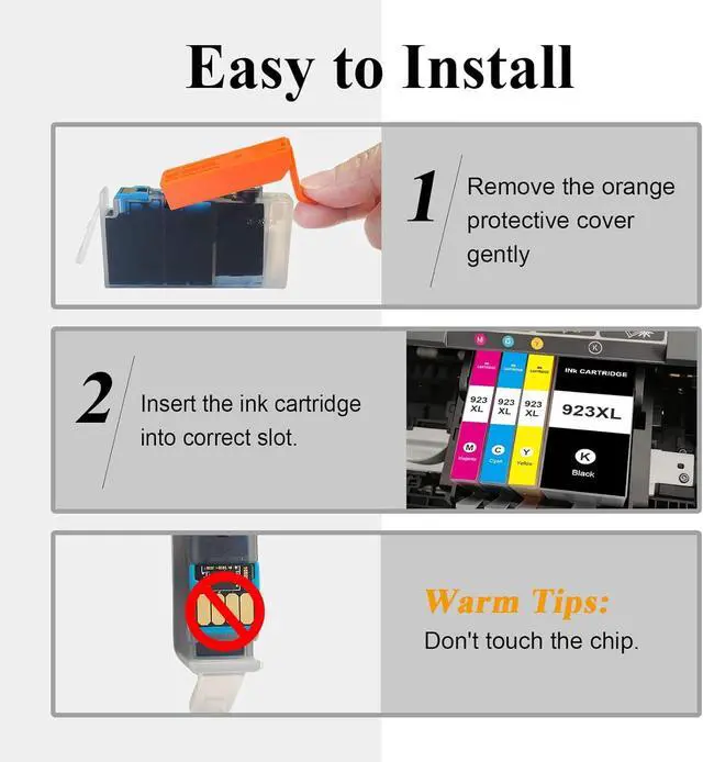 What's in the box:4 Pack 923XL Ink Cartridges(1BK/1C/1M/1Y).