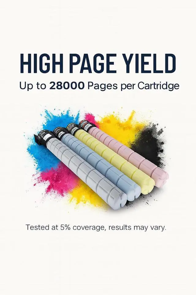 Package Includes: 4-Pack High Yield TN328K TN328C TN328M TN328Y Replacement for Konica TN328/TN330/TN628/TN626 Toner cartridge delivers sharp, smudge-free text and vibrant graphics, ensuring high-quality prints for both documents and images