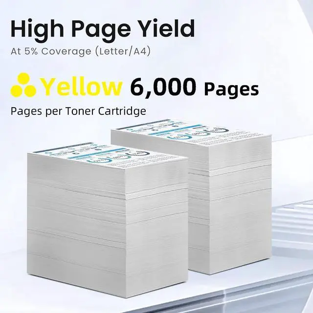 New compatible Color Toner Cartridge with new chip.Page Yield up to Black-9,000 Pages Cyan/Magenta/Yellow-6,000 Pages@ 5% coverage