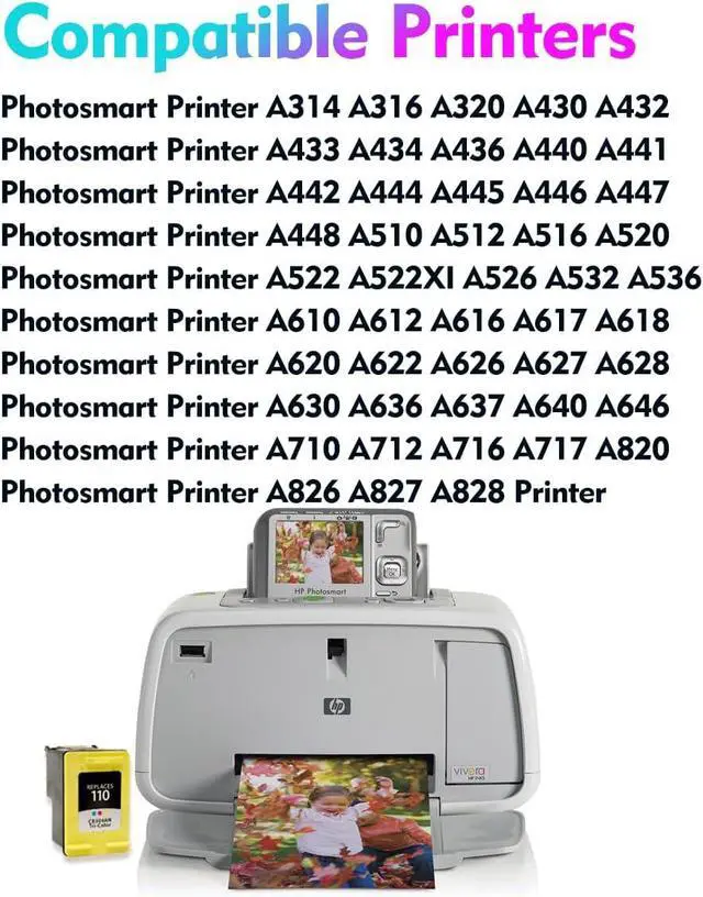 XLHippo Remanufactured High Yield 110 Ink Cartridges (110 XL) Replacement for hp110 Ink Cartridge (110 hp ink cartridge) Compatible for Photo smart Printers: HP Photo Smart A626, Photo Smart A627, Photo Smart A646, Photo Smart A526, Photo Smart A826, Photo Smart A442, Photo Smart A440, Photo Smart A320, Photo Smart A446, HP Photo Smart A622, HP Photo Smart A444, HP Photo Smart A445, HP Photo Smart A516, HP Photo Smart A616, HP Photo Smart A536, Photo Smart A636, Photo Smart A716, Photo Smart A717, Photo Smart A552, Photo Smart A530, Photo Smart A630, Photo Smart A432, Photo Smart A430, HP Photo Smart A436, Photo Smart A433, Photo Smart A532, Photo Smart A434