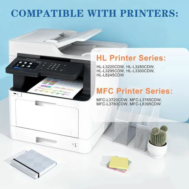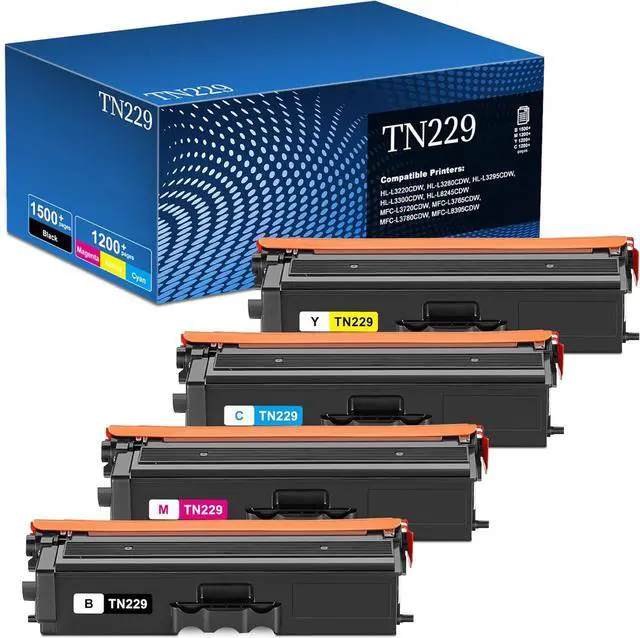 Compatible Printers: TN229 toner cartridges 4-pack compatible for Brother HL-L3220CDW, HL-L3280CDW, HL-L3295CDW, HL-L3300CDW, HL-L8245CDW, MFC-L3720CDW, MFC-L3765CDW, MFC-L3780CDW, MFC-L8395CDW printer