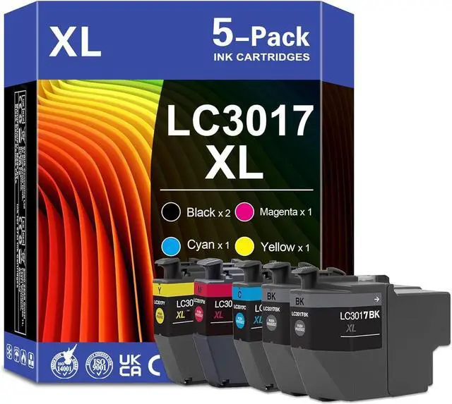Package Include: 5-Pack LC3017XL Ink Cartridges(2BK/1C/1M/1Y)