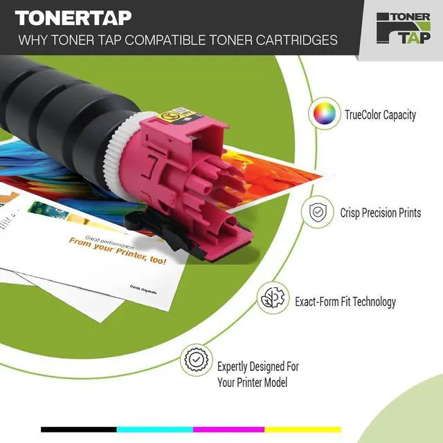 True-to-Life Color with Japanese Toner Our TK-8557 toner cartridges are engineered with TonerTap Japanese toner to deliver exceptionally accurate, true-to-life color. Experience vibrant hues and deep blacks that match what you see on your screen, providing professional-grade results for presentations, photos, and marketing materials right from your desk.