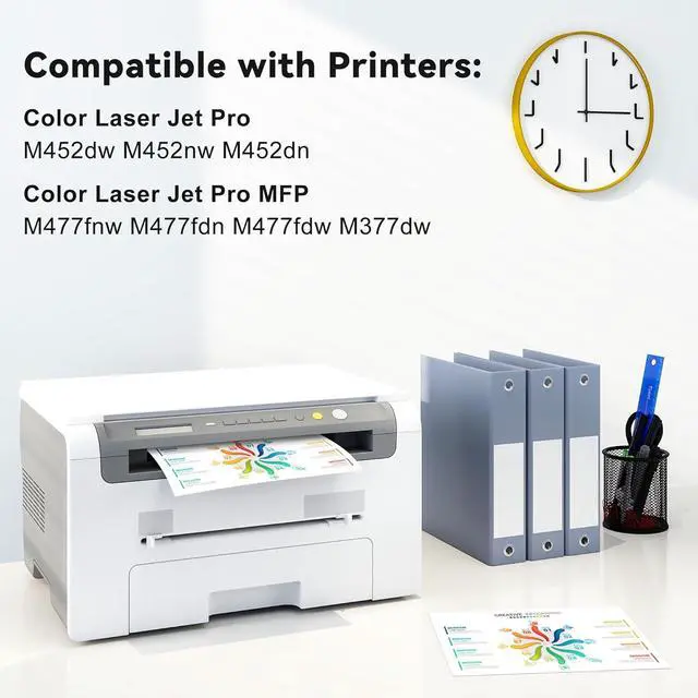 Compatible With HP Printers: 410A CF410A toner cartridges 4 pack compatible for for HP Color Pro MFP M477fnw, for HP Color Pro MFP M477fdw M477fdn, for HP Color Pro M452nw M452dn M452dw M477 M452 477fnw 477fdn 477fdw M377dw, for HP Pro M477fnw Printer.