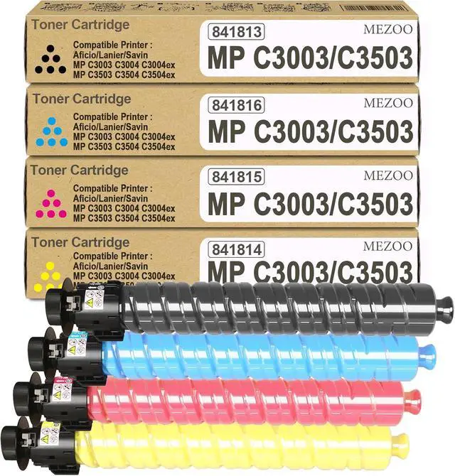 Package Contents: 4 packs MP C3003 MP C3503 toner cartridges (Black Cyan Magenta Yellow), No initialization requiredinstall and print immediately