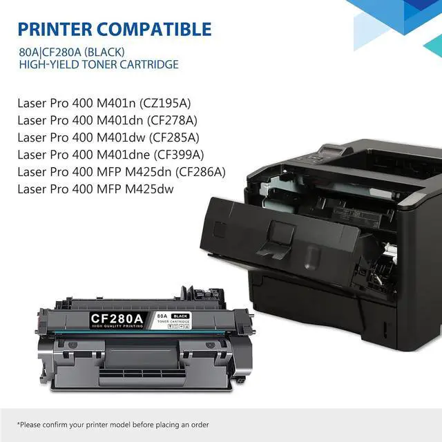 This cartridge works with: Laser Pro 400 M401n M401dn M401dw M401dne; Laser Pro 400 MFP M425dn M425dw Printer