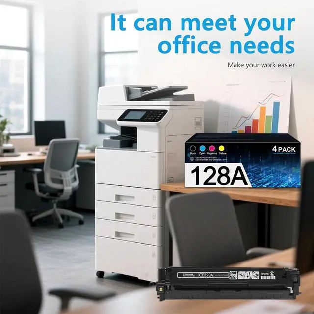 High-yield performance: 128A black toner: 2,300 pages, color toner (cyan/yellow/magenta): 1,600 pages each, based on 5% coverage (Letter/A4), reduces replacement frequency and ensures long-lasting use