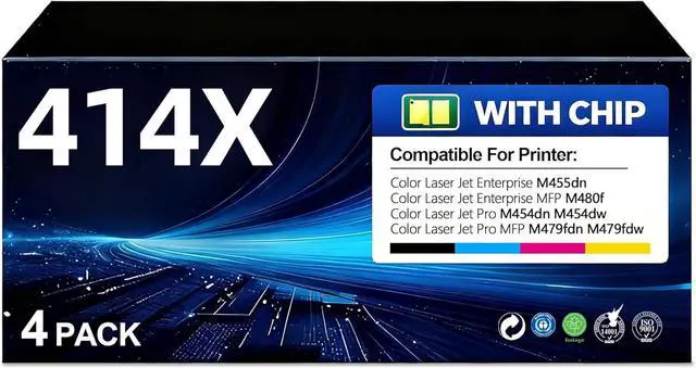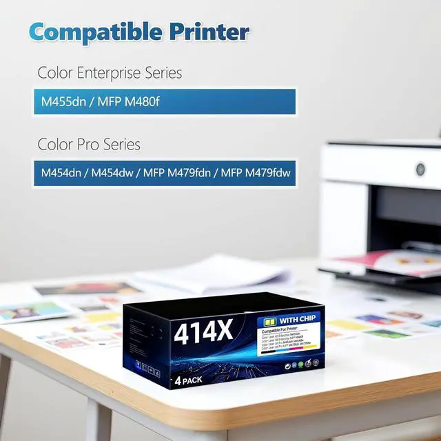 Compatible Printer Series: Perfectly works with Color Laser jet Pro MFP M479fdw M479fdn M479dw M479, Color Laser jet Pro M454dw M454dn M454, Color Enterprise M455dn, MFP M480f laser printer. Also compatible with 414A high-yield cartridges no compatibility errors