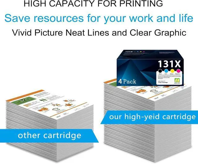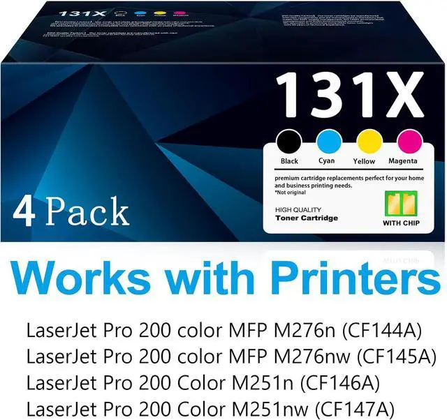 With Chip: The 131X toner cartridges 4 pack with chip, No need to remove old chips recognized by printer instantly after installation, ready to use on power - on