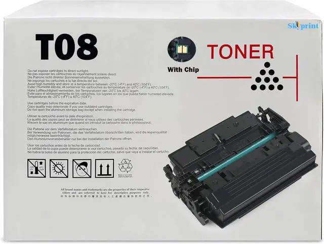 SkyPrint T08 toner cartridges come with intelligent chips that automatically recognize and provide printing, Not damaging the machine Shake the toner cartridge horizontally 2-3 times before use to evenly distribute the toner,providing you with better clear and natural printing effects