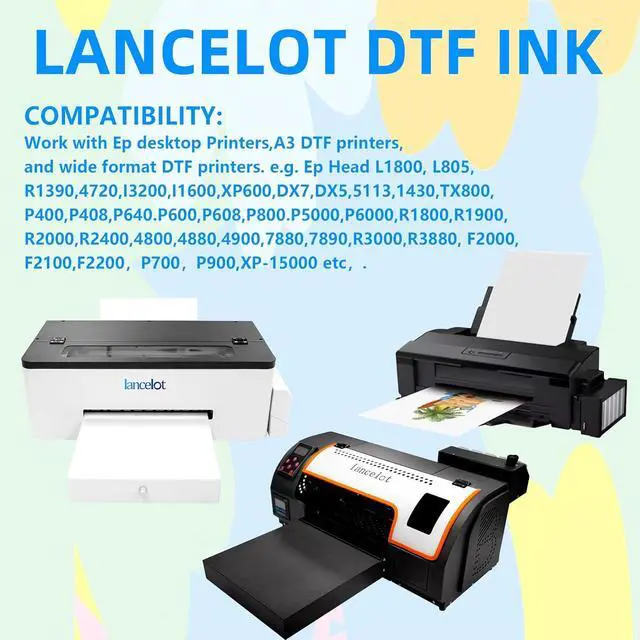 Extensive Printer Support Refill DTF ink works seamlessly with -8550, ET8500, XP15000, L1800, P400/800/600 series, R1390-R3000, and 4880/7880 models.