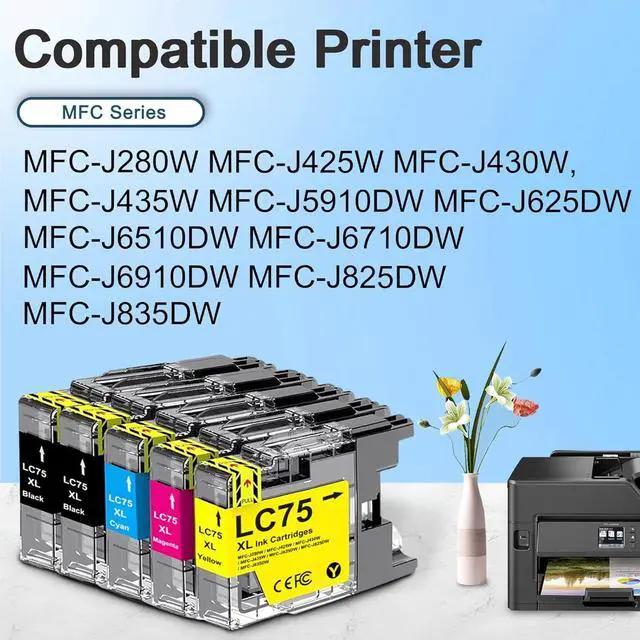 Seamless & Super Compatibility: As a high quality LC75XL ink cartridges with intelligent chips, it guarantees printer recognition and precise ink level tracking. Works flawlessly with MFC-J6510DW MFC-J6710DW MFC-J6910DW MFC-J280W MFC-J425W MFC-J430W MFC-J435W MFC-J5910DW MFC-J625DW MFC-J825DW MFC-J835DW Printer
