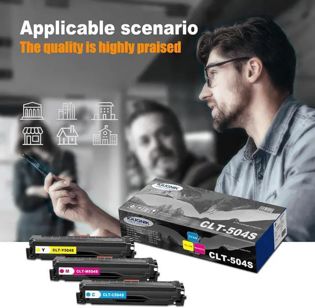 • Package contents: 3-Pack 1C/1M/1Y CLT-C504S (SU029A) Y504S (SU506A) M504S (SU296A) Compatible for Samsung CLT-C504S (SU029A) Y504S (SU506A) M504S (SU296A) toner cartridge.