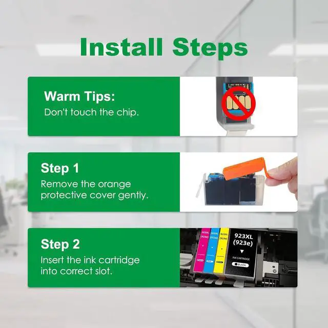 Package Contents: 923XL Ink Cartridges(4 Pack: 1 Black 1 Cyan 1 Yellow 1 Magenta)