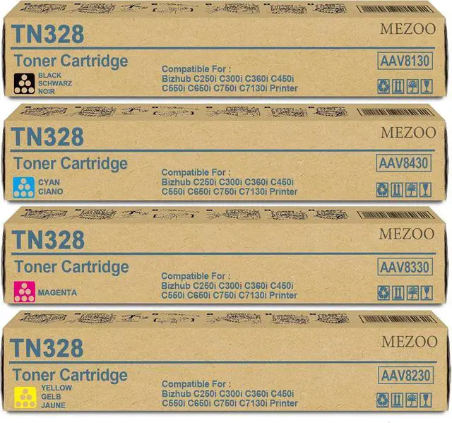 Package Contents: 4 Pack TN328 Toner Cartridges(TN328K Black Toner,TN328C Cyan Toner,TN328M Magenta Toner,TN328Y YellowToner),No initialization requiredinstall and print immediately