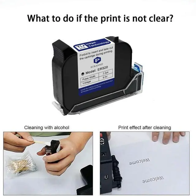[Quick dry ink cartridge]: Eurannit uses industrial-level of quality ink cartridges, with a smooth nozzle for bright, high-quality prints. Achieving real 1 second imaging and 3 seconds quick drying. And the ink does not block the ink outlet. Support prints on all surfaces. The ink cartridge works reliably in the range of 68 to 86 degrees fahrenheit. The humidity should be between 10% and 80%.