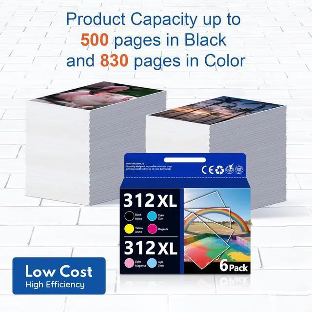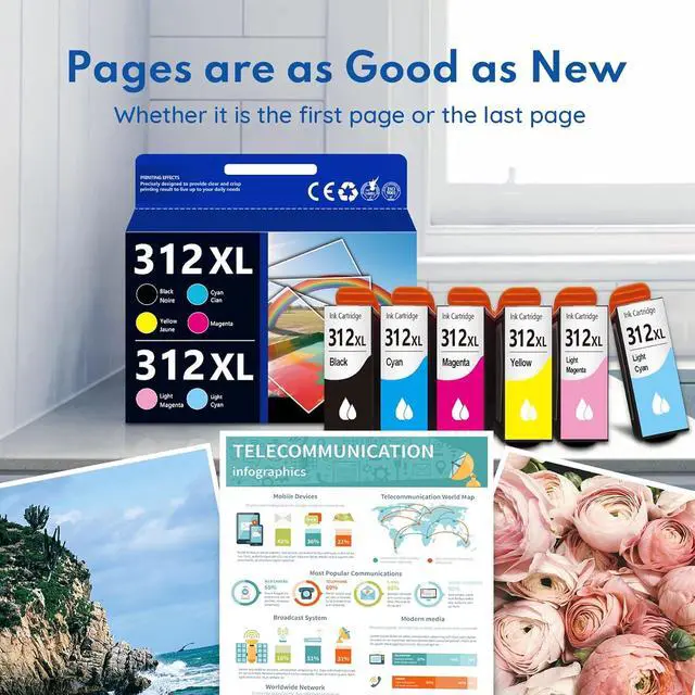 What's in the box: new 312XL Ink Cartridge 6 Pack ( 1 Black 312XL, 1 Cyan 312XL, 1 Magenta 312XL,1 Yellow 312XL,1 Light Magenta 312XL ,1 Light Cyan 312XL)