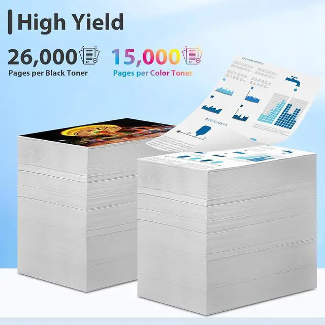 High Yield: 26,000 pages per 006R01513 black toner, 15,000 pages per color