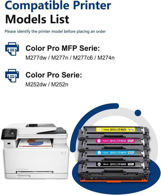 Compatible Printer: The 201X Toner Cartridge for Color Pro MFP Series (M277dw, M277n, M277c6, M274n) and Color Pro Series (M252dw, M252n). A Reliable Choice for Your Printer