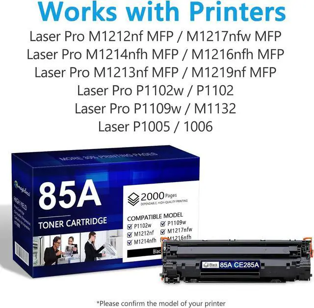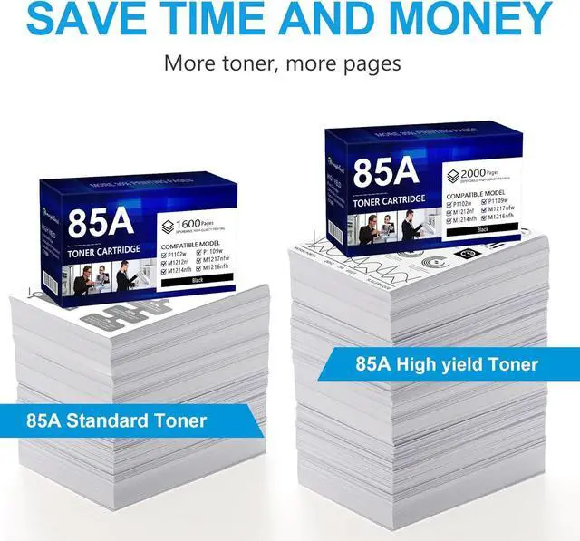 Page Yield: Up to 2,000 pages for 85A CE285A Black Toner Cartridge (Letter/A4, at 5% coverage)