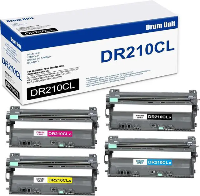 Package Contents: 1 Pack DR210CL Black Drum Unit; 1 Pack DR210CL Cyan Drum Unit; 1 Pack DR210CL Magenta Drum Unit; 1 Pack DR210CL Yellow Drum Unit.