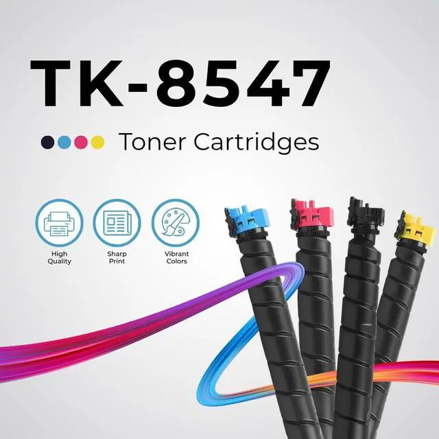 VIBRANT, LONG-LASTING PRINT QUALITY: Produce vibrant color documents, deep black text, and professional-grade results using this TK-8547 color toner cartridge set for Kyocera TASKalfa 4054ci and 5054ci printers. Perfect for high-resolution prints, marketing brochures, reports, and flyers, it delivers crisp text, zero fading, and fast drying performance. This compatible printer toner is a reliable Kyocera toner alternative for offices, schools, banks, and hospitals.