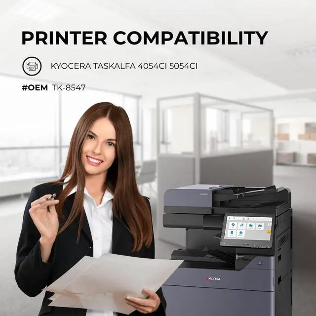 BUILT FOR PERFORMANCE & DURABILITY: Crafted with eco-friendly toner cartridge materials, this TK-8547 compatible toner ensures fast drying, no clogging, and consistently smooth printing. Built for heavy workloads, it's a trusted Kyocera toner alternative that delivers premium results across thousands of pages. Perfect for TASKalfa 4054ci and 5054ci printers, it performs in high volume printing for offices, schools, and business toner set tasks like reports and flyers.