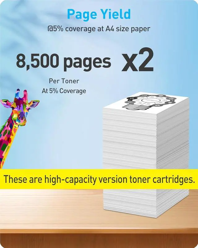 Page Yield: up to 8,500 pages per black toner, @5% coverage at A4 size paper