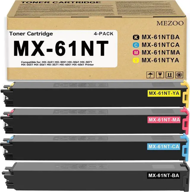 Package Contents: 4 pack MX61NT MX-61NT toner cartridge(Black Cyan Magenta Yellow)