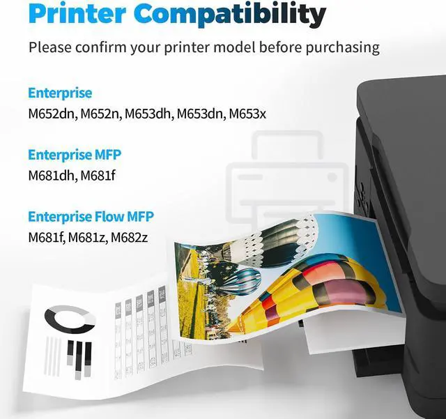 Compatible Printers: Compatible with HP Color Enterprise M652dn M652n M652, Compatible with HP Color Enterprise M653dn M653dh M653x M653, Compatible with HP Color Enterprise MFP M681dh M681f M681, Compatible with HP Color Enterprise Flow MFP M681f M681z M682z Laser printer