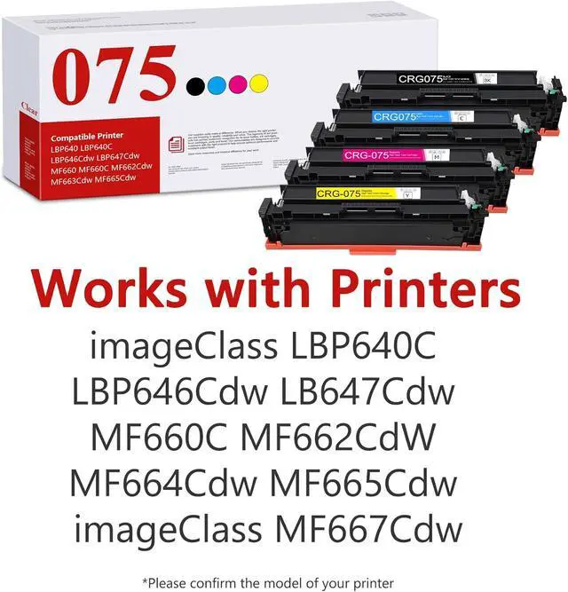 Compatible Printer:075 Toner Cartridge Compatible for Color ImageCLASS LBP640C LBP646Cdw LB647Cdw MF660C MF662CdW MF664Cdw MF665Cdw MF667Cdw Printers