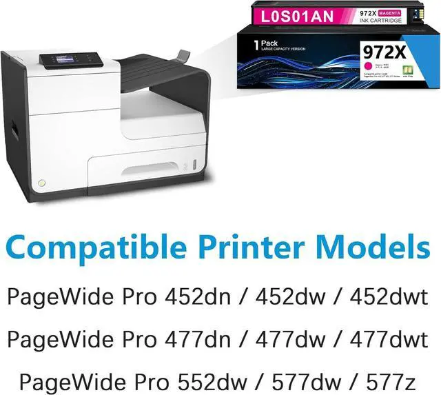 These 972X Ink cartridge works with: PageWide Pro 452dn 452dw 452dwt 477dn 477dw 477dwt 552dw 577dw 577z Printers