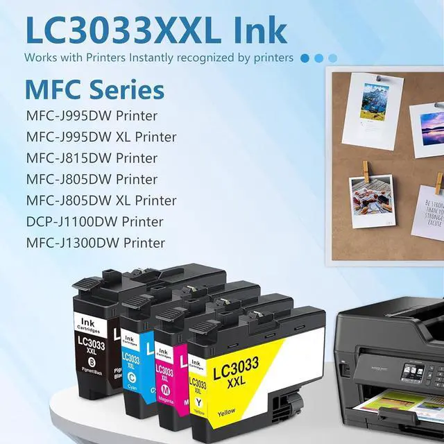 Compatible PrintersReplacement for brother printer ink lc3033 bk/c/m/y 4 pack work with MFC-J995DW MFC-J805DW MFC-J815DW MFC-J995DW XL MFC-J805DW XL Printer