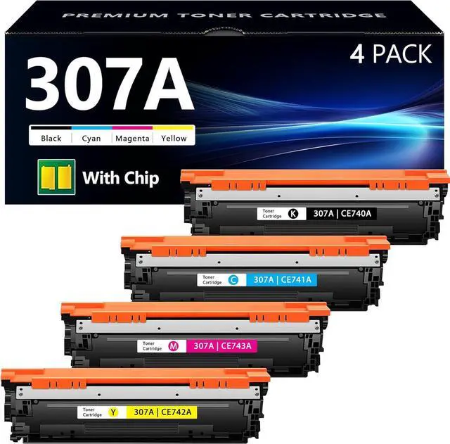 Package Contents: 1 x 307A Black toner (CE740A), 1 x 307A Cyan toner (CE741A), 1 x 307A Yellow toner (CE742A), 1 x 307A Magenta toner (CE743A) (Total 307A toner cartridges 4 pack)
